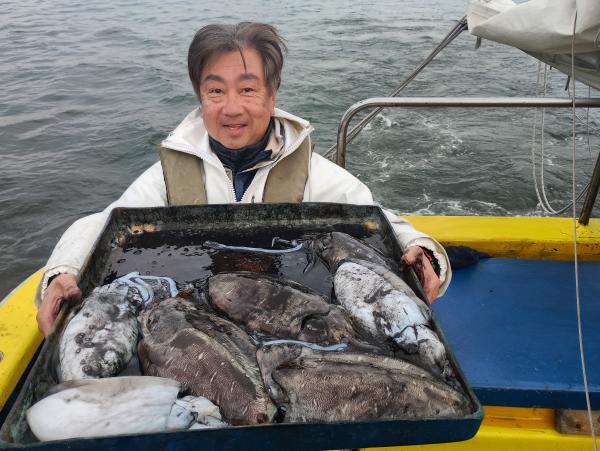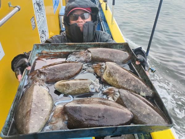 特大雷イカ(2㌔up)主体に船で9杯(7人)