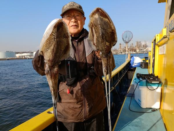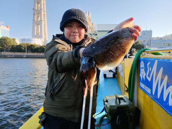 雷イカは文句なしの最大級(2㌔超級)デカいし、美味いです。墨イカは混じる程度です。正直、2月も後半になると墨イカに魅力は感じないので、雷イカの方が船長的には嬉しいです。