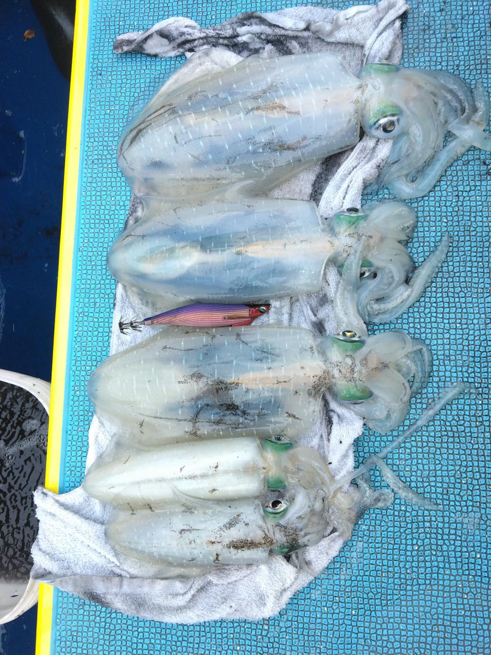 本日は、スミイカ試しで出船しました。結果から言えば、スミイカ1杯~5杯、アオリイカ良い人4杯、シリヤケイカ良い人6杯