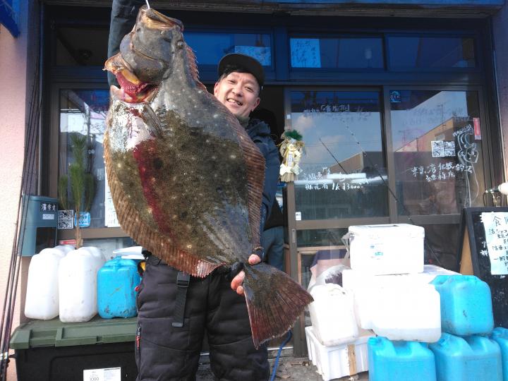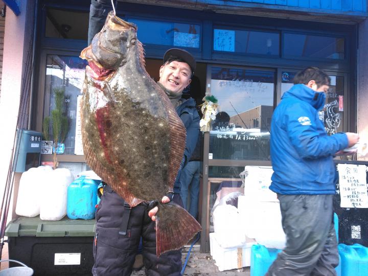 極めつけは、帰りに寄った富岡沖での8.5㌔93㎝のモンスターヒラメ