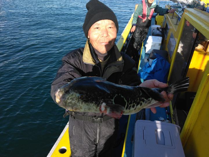 トラフグも多く釣れます。獲れた人で5匹 トラフグを獲りたい方は