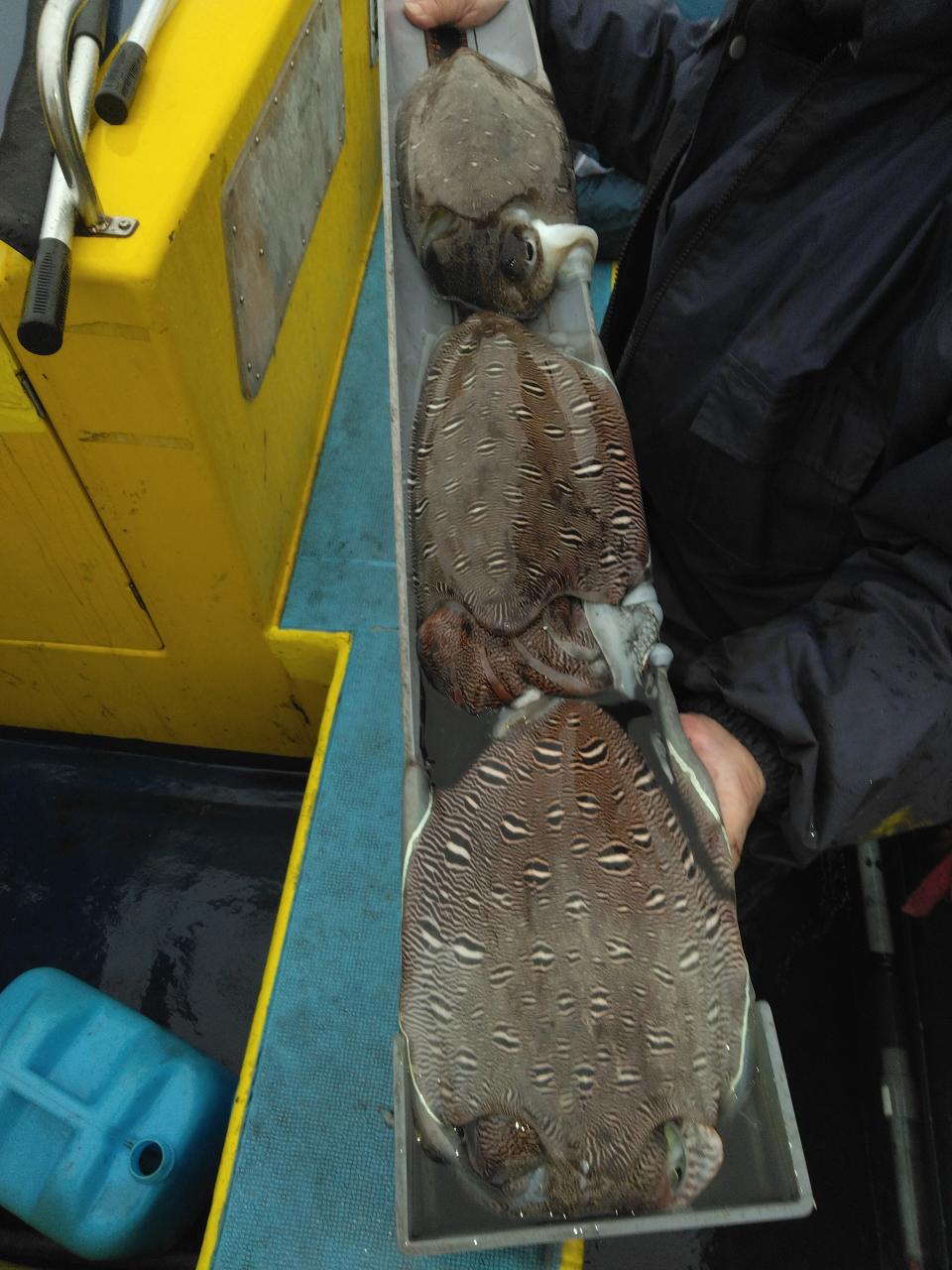 後半ボチボチ乗ってきてくれて 大型カミナリイカ全員ゲット成功!