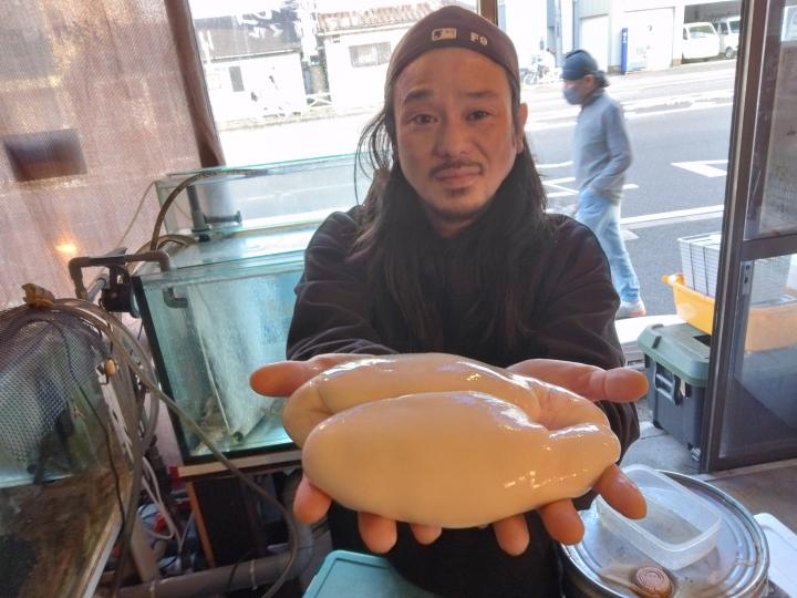 トラフグの餌は冷凍アマエビとサイマキ 店舗にてイワシの販売もあります。