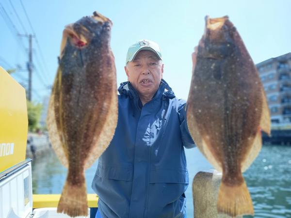 ヒラメ良い人2枚 竿頭2人 弘子 様 野田 様