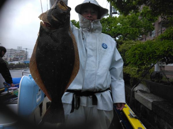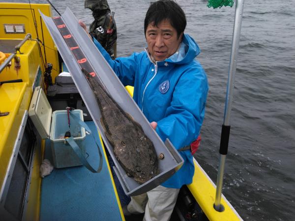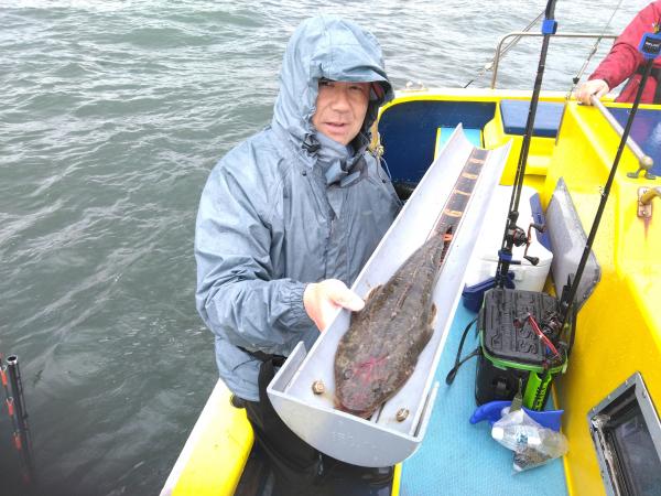 ゲストにヒラメ 雨と寒さで13時撤収