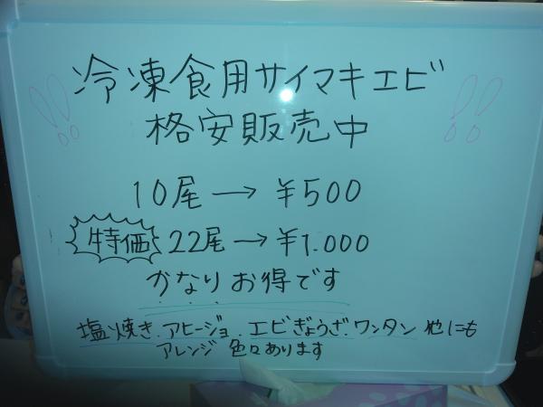 必ずご予約時にお伝えください。現在の餌はサイマキです。
