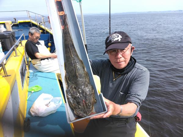 5月いっぱいまで 60㎝UPモンスターマゴチゲットで濱生丸Tシャツプレゼントしてます。