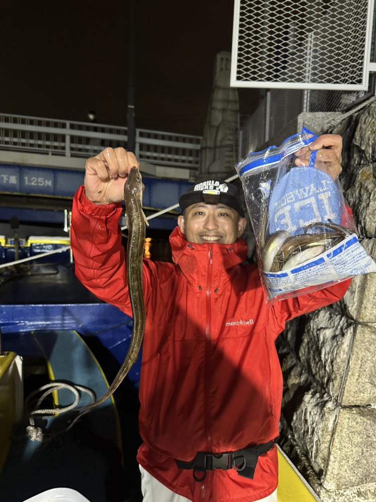 本日も濱前夜アナゴ出船してきました。濁り潮で明るいうちから顔を見れて