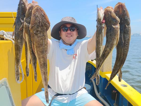 本日もマゴチ爆釣でした。猛暑なので、短時間で決着つけられて、申し分なし